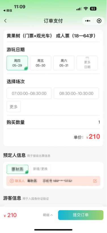 6.根据页面提示,填写和勾选购票人信息,如姓名、手机号、身份证号码等。