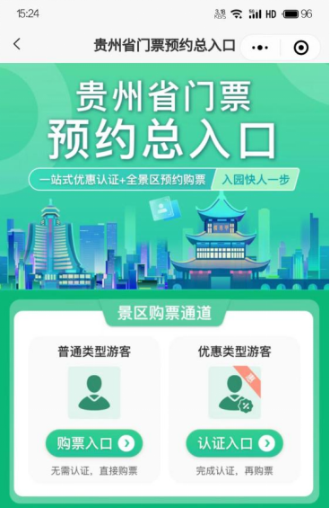 2. 普通类型游客直接进入购票入口买票,符合优惠条件的游客可以点击认证入口,上传相关证照完成一次认证后,全年可享优惠。