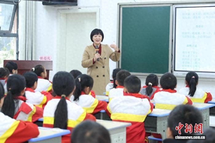 10月31日上午,中国作家协会会员、儿童文学作家张菱儿以“探寻童诗的快乐与美好”为题,为贵州凯里市第二十五小学近百名师生开展专题讲座。 (中国宋庆龄基金会供图)